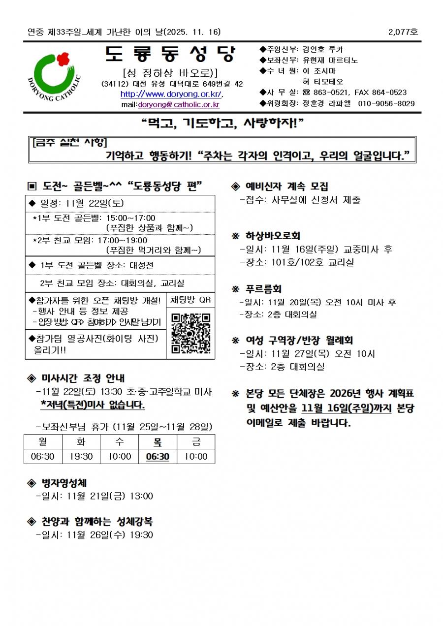 연중 제33주일_세계 가난한 이의 날(2077,20251116)