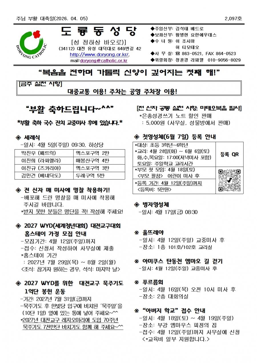 | 386 | 주님 부활 대축일(2097,20260405)  | | 04-04 | 106 |